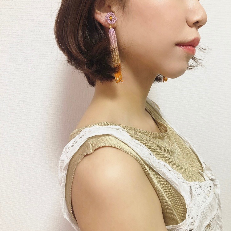 タッセルとはまた違う、横にぶわっと広がるシルエットで、裾の方からカットビーズがチラチラ光るのもまた可愛いです❣️