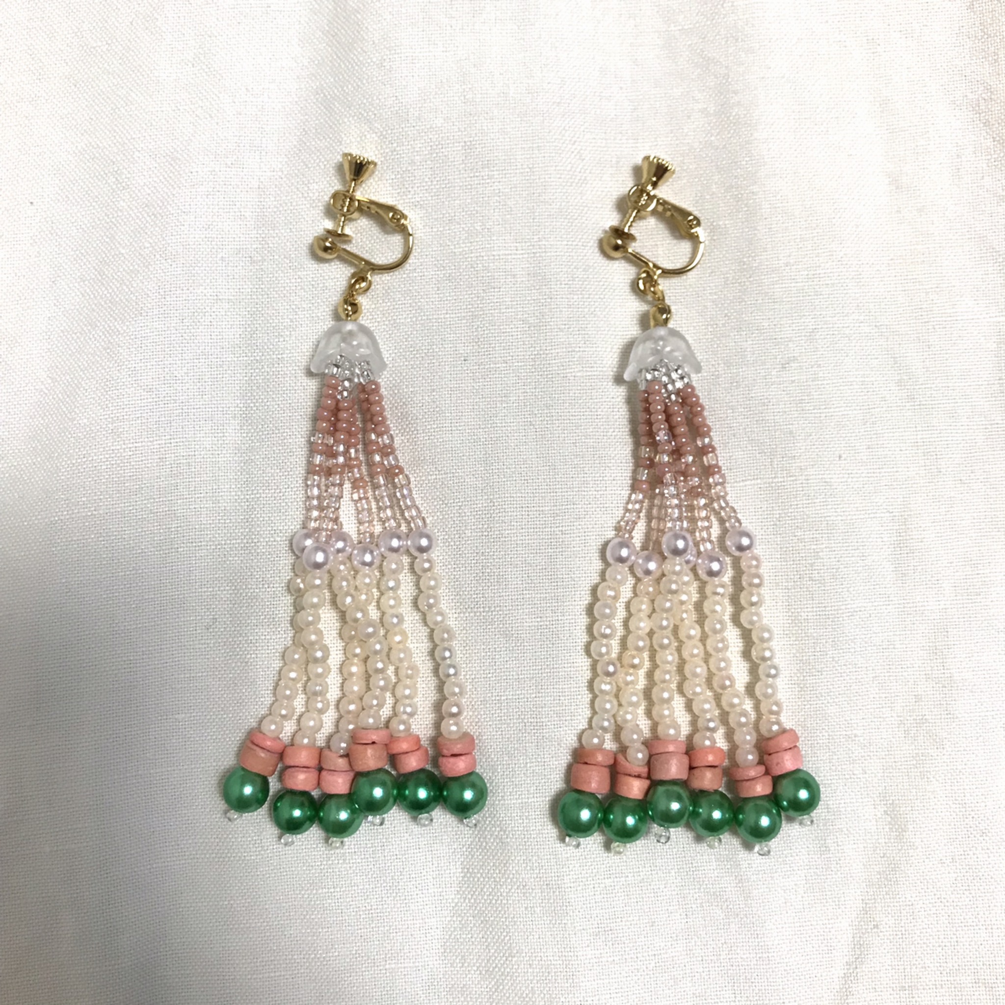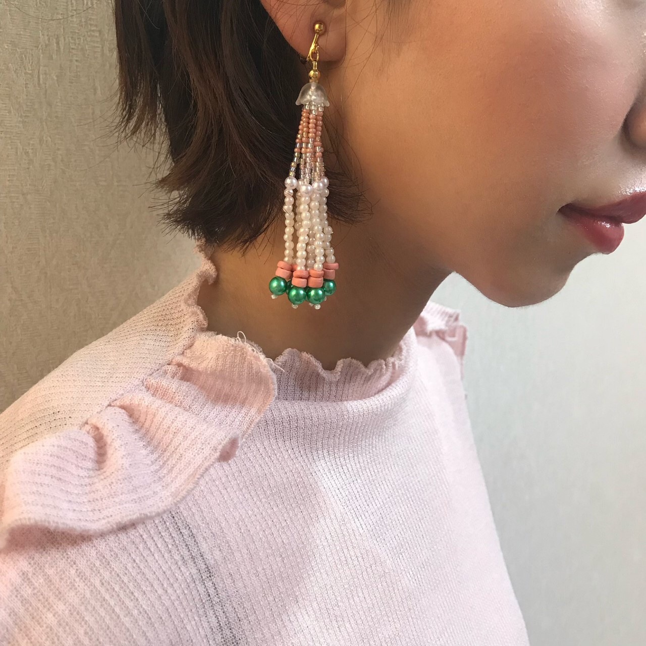 こちらは私が制作しているアクセサリーの中でも唯一、使われているビーズ 全てがpink♡のシリーズ