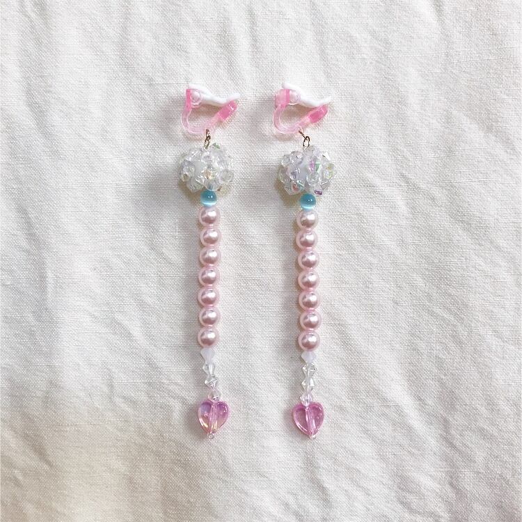 イヤリング金具はプラスチック製のもので、軽く子供でも取り扱いやすい耳に挟むタイプのイヤリングです。
