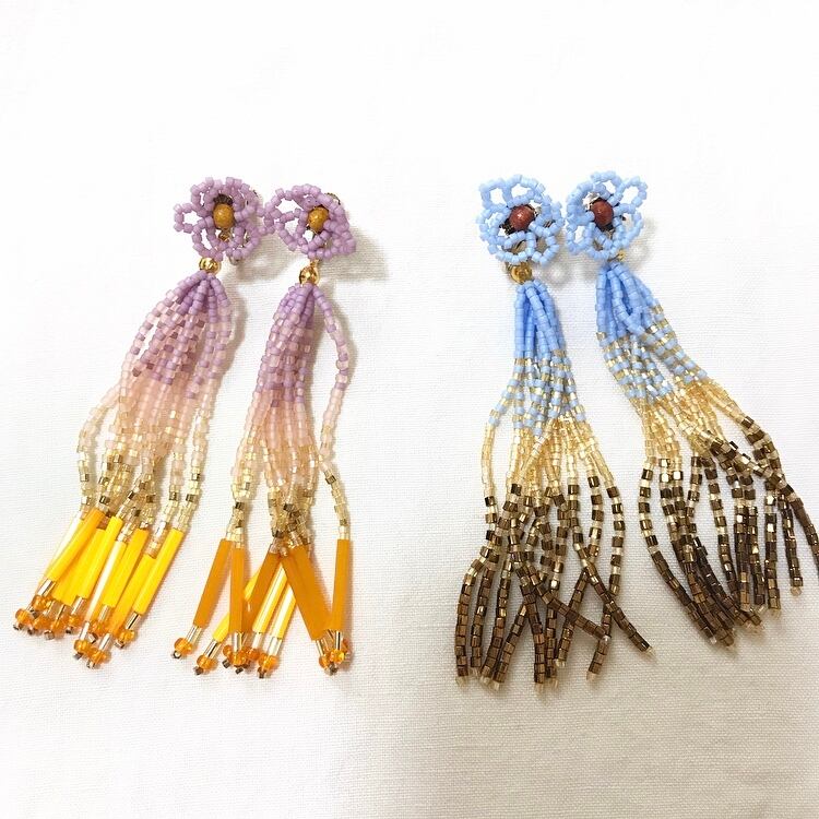 刻々と表情を変える、夕焼けのグラデーションにインスピレーションを受けて制作したタッセルイヤリングです。