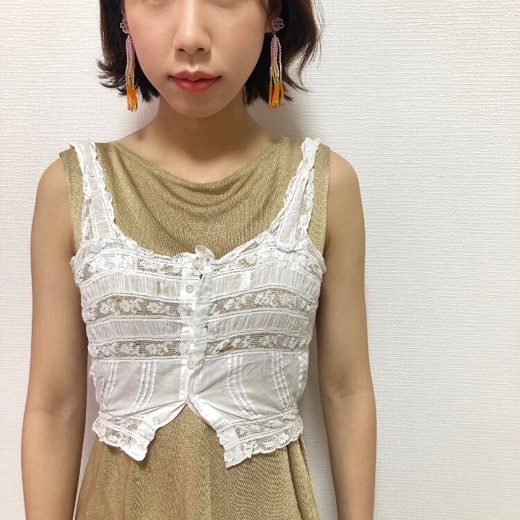 質の良いカットビーズをふんだんに使用することで、太陽光下でキラキラと光るイヤリングに。