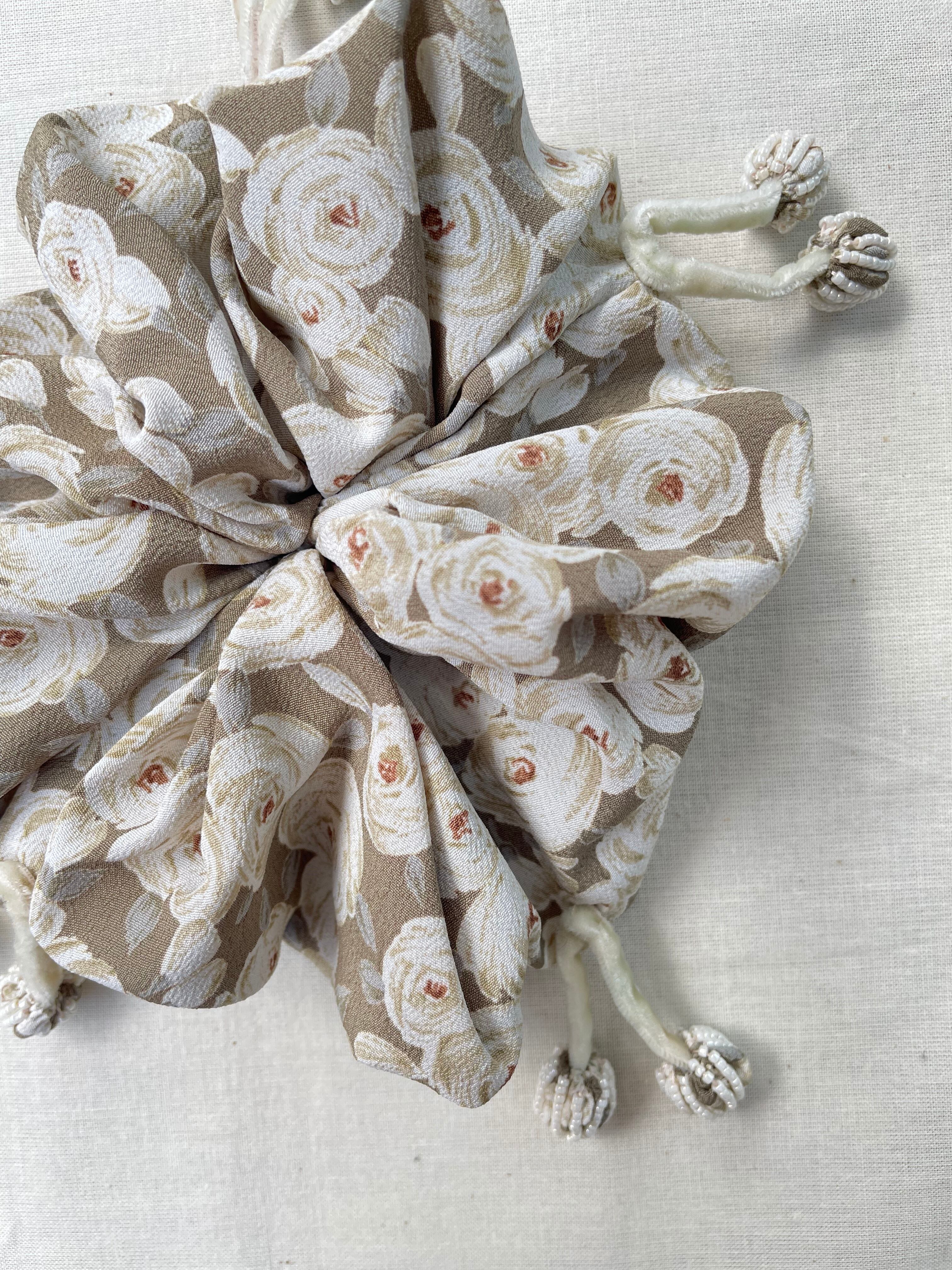 一点一点手作業で仕立てた "さくらんぼ" のモチーフを、贅沢に付けた一点モノのシュシュです。