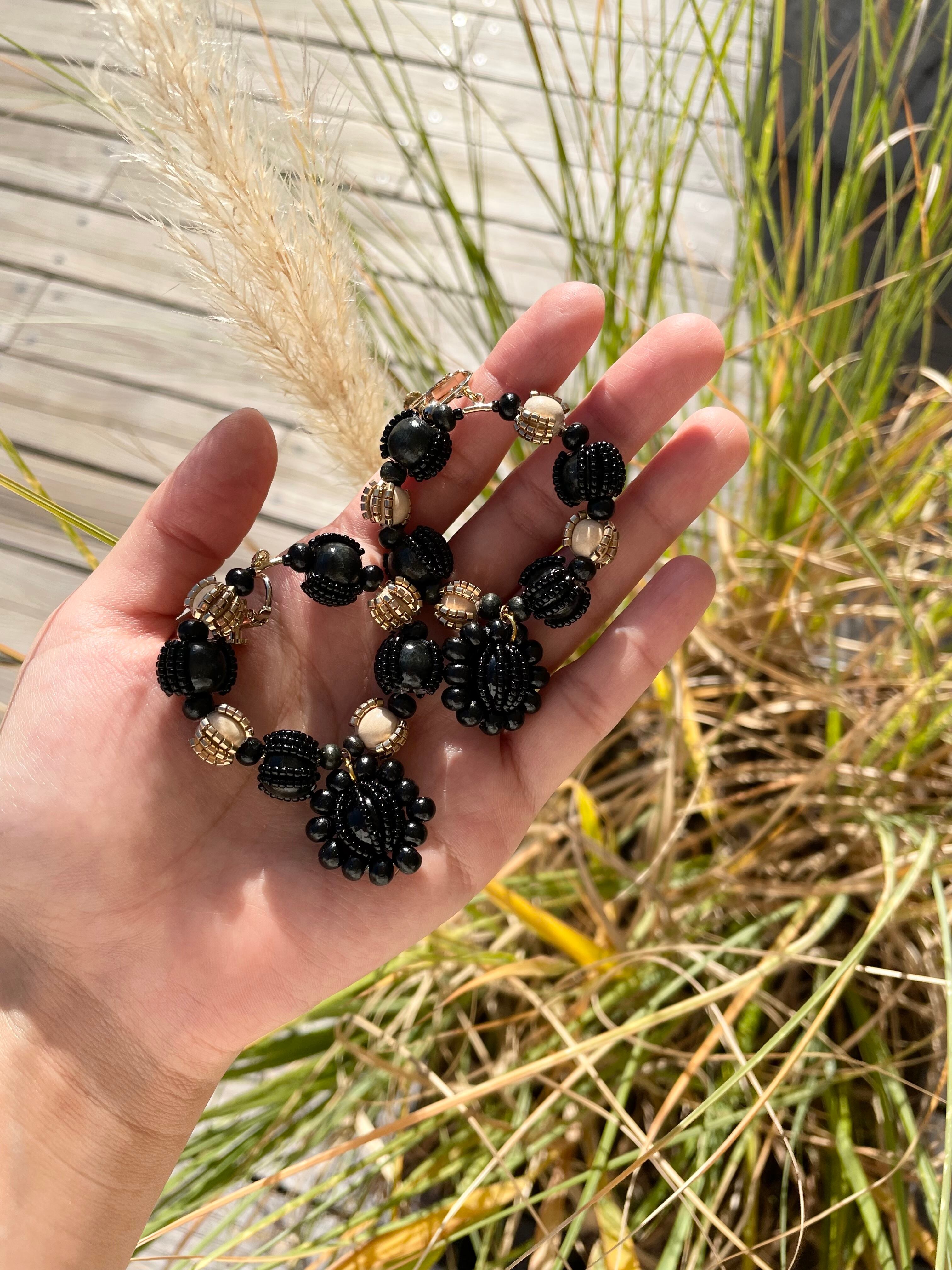 Mサイズは、ゴールドのビーズも交互に使用し肌馴染み良く仕上げました。Sサイズより少し存在感ある印象です。