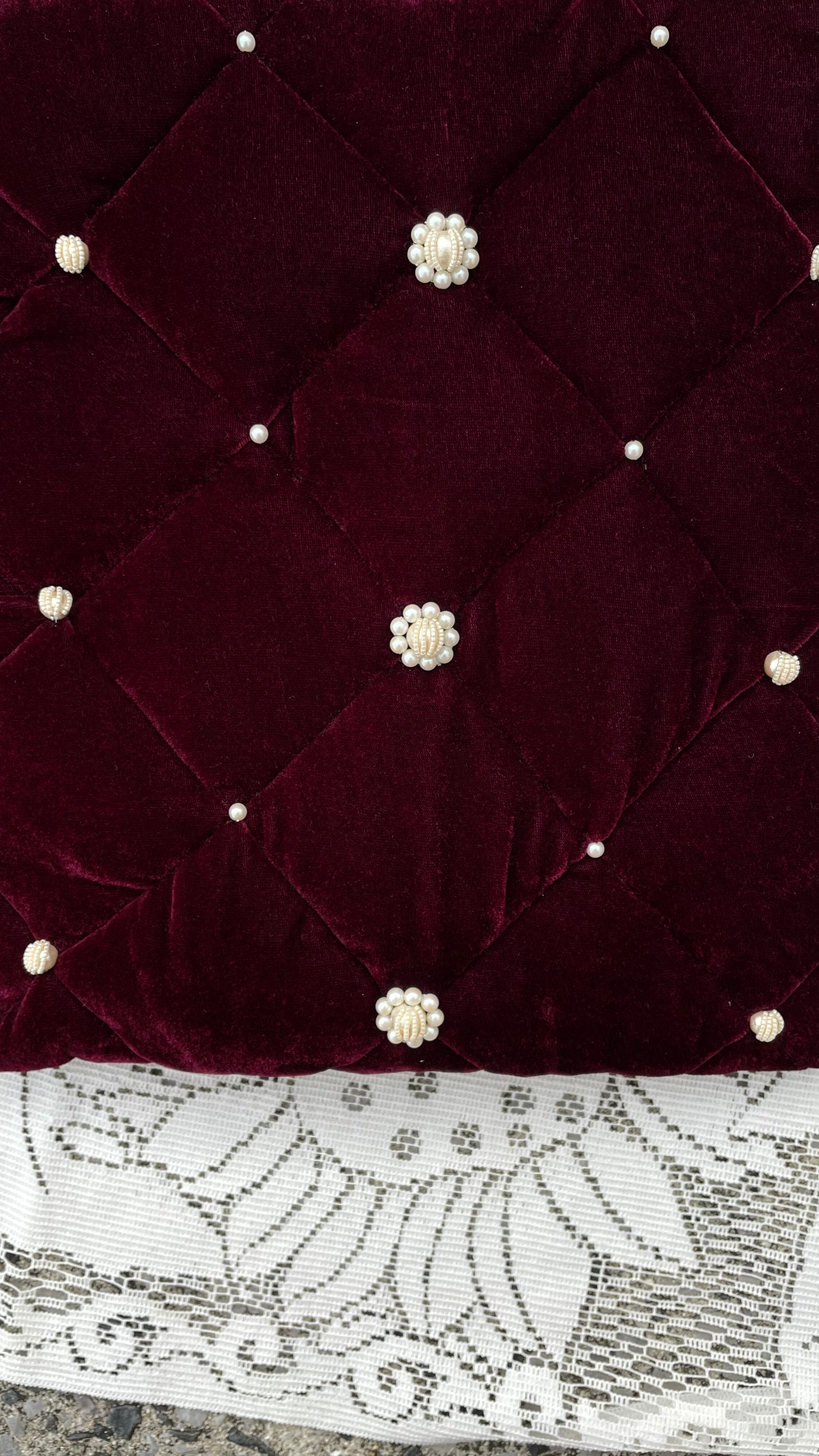 お手製のキルティングに、OUIPROではおなじみのpearl flowerやCandiesモチーフを添えています。